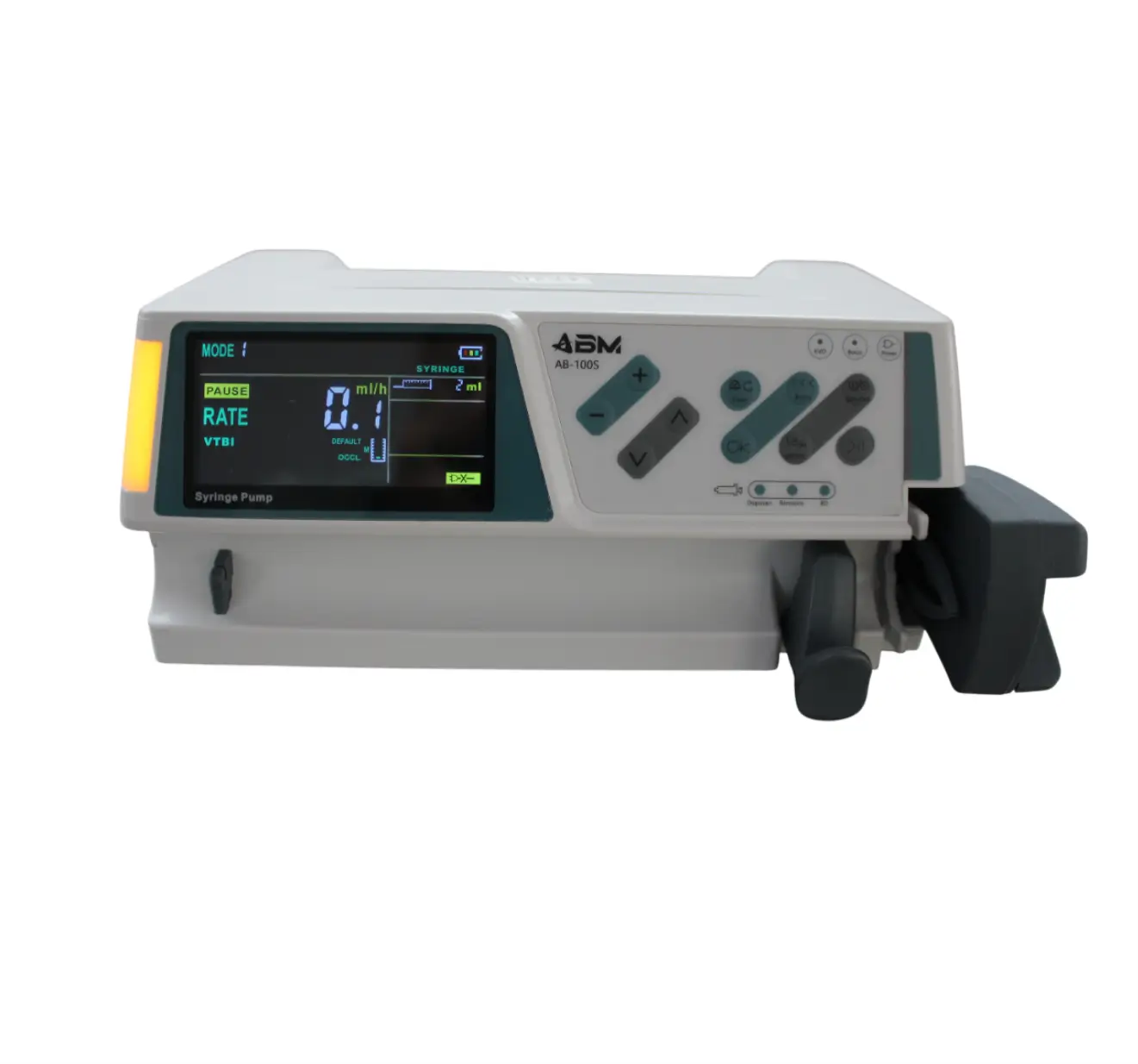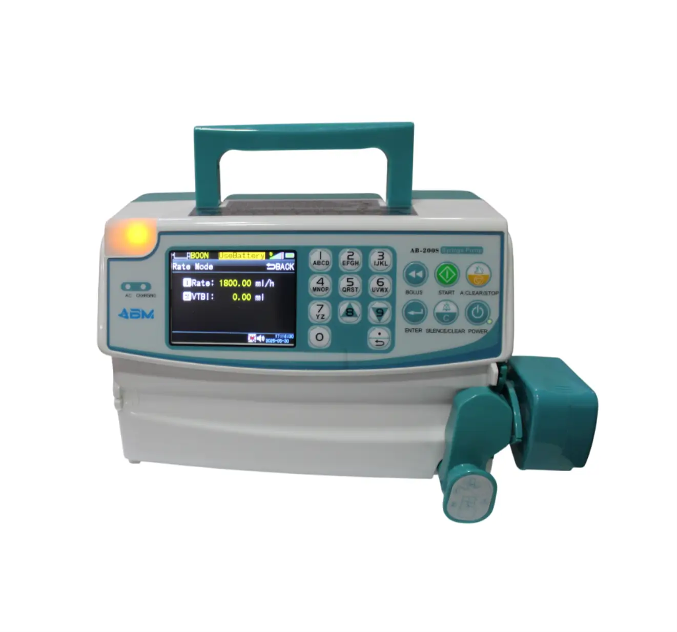 AB-200S Syringe Pump features a 2.9-inch color display and weighs just 1.7 kg, making it compact and user-friendly. It supports a wide flow rate range of 0.1 to 1800 ml/hr and is compatible with multiple syringe sizes (5ml to 60ml) from various brands. With 12 infusion modes including Rate, Time, Body Weight, TIVA, and Drug Library, it offers flexibility and precision for diverse clinical needs.