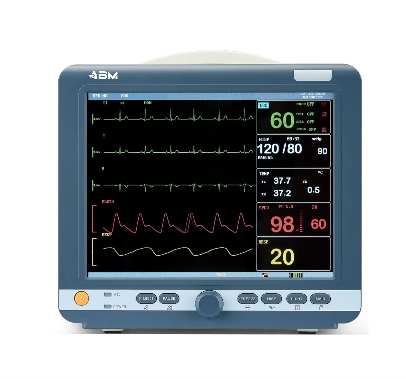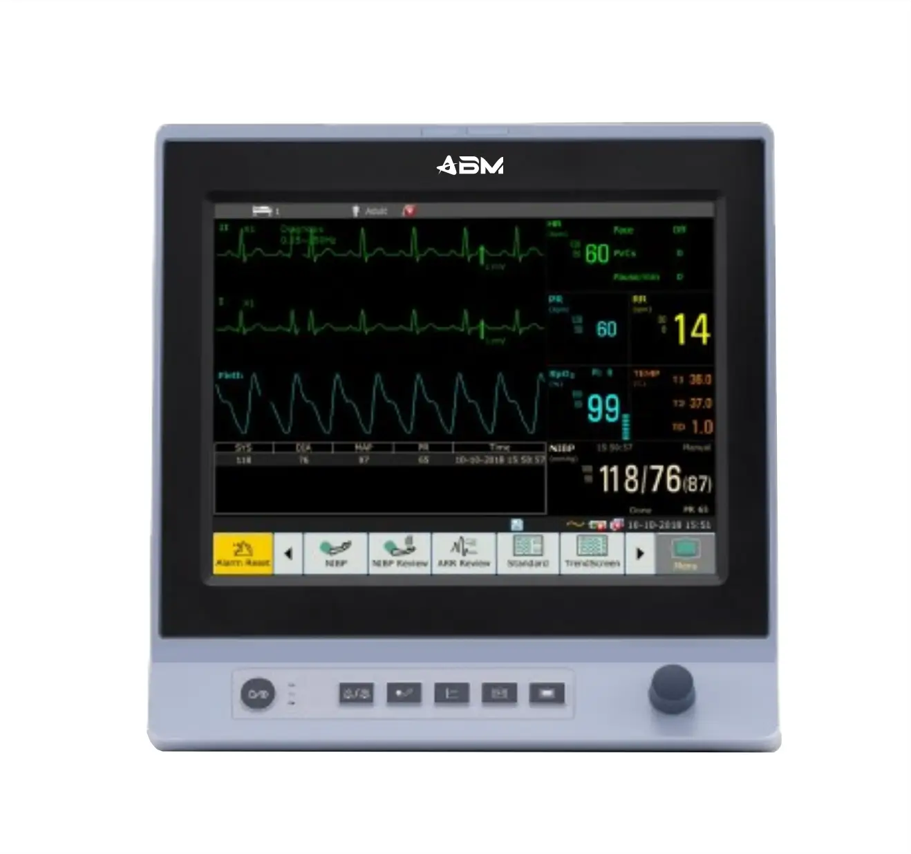 The ECO Patient Monitor offers comprehensive, real-time monitoring with a crisp 12.1" TFT color display and user-friendly interface. Ideal for neonatal to adult care, it tracks essential parameters including ECG, SpO₂, NIBP, RESP, TEMP, and Pulse Rate with high accuracy. Features include customizable alarms, trend analysis for up to 48 hours, and optional modules like IBP, ETCO₂, and printer. Designed for performance, reliability, and ease of use - all in one compact system.