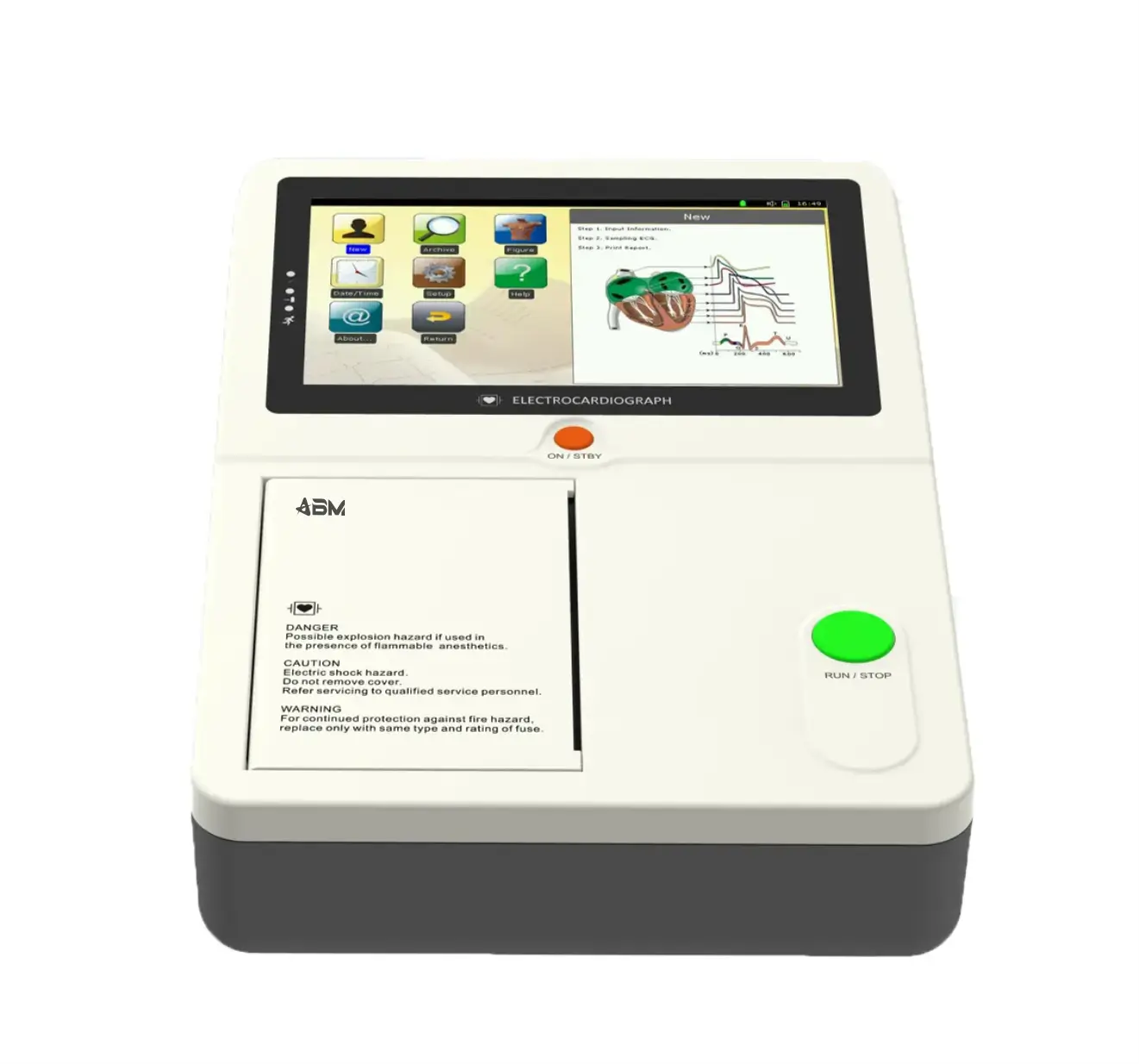 The ECG 6I is a modern, lightweight, and compact ECG machine designed for convenience and accuracy. It features a 7" color touchscreen and supports simultaneous 12-lead acquisition with full-screen display of 6-channel ECG waveforms. Equipped with sensitive ADS, HUM, and EMG filters, it ensures clear and reliable readings in any clinical setting